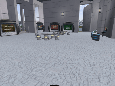 Within the library are various presentations that answer questions about basic terms and procedures as they relate to hypergridding. It is designed to be self-service since there is no staff for this library. The goal is to get people up and ready to travel the Open Sim by being able to hypergrid whenever it is convenient for them.