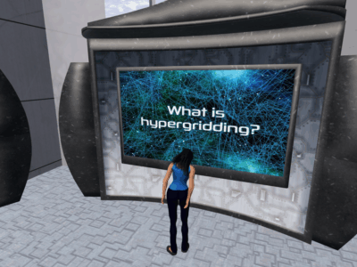 The Virtual Worlds Education Consortium and the Community Virtual Library have collaborated to curate an updated resource for those on Kitely who want to learn more about how to hypergrid to other areas of the Open Sim. The Hypergrid Resource Island is home to the Hypergrid Resource Library, which contains basic information on what hypergridding is and details on how to get started. The Library can be accessed via the teleporters located at Metaverse Libraries’ Cookie II area on Kitely, or by bridge from the central Metaverse Libraries Island.